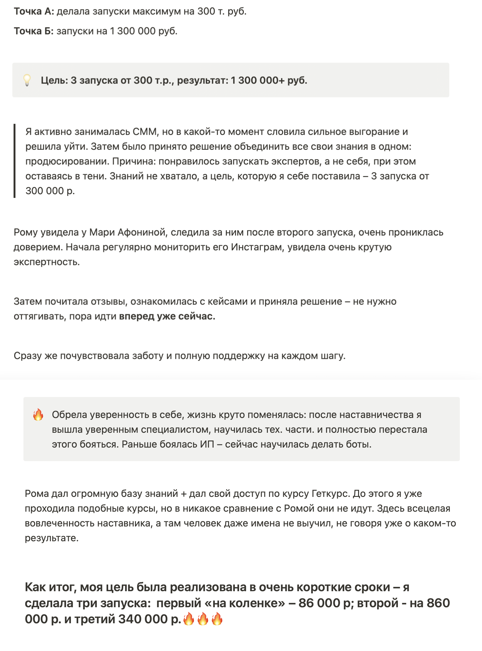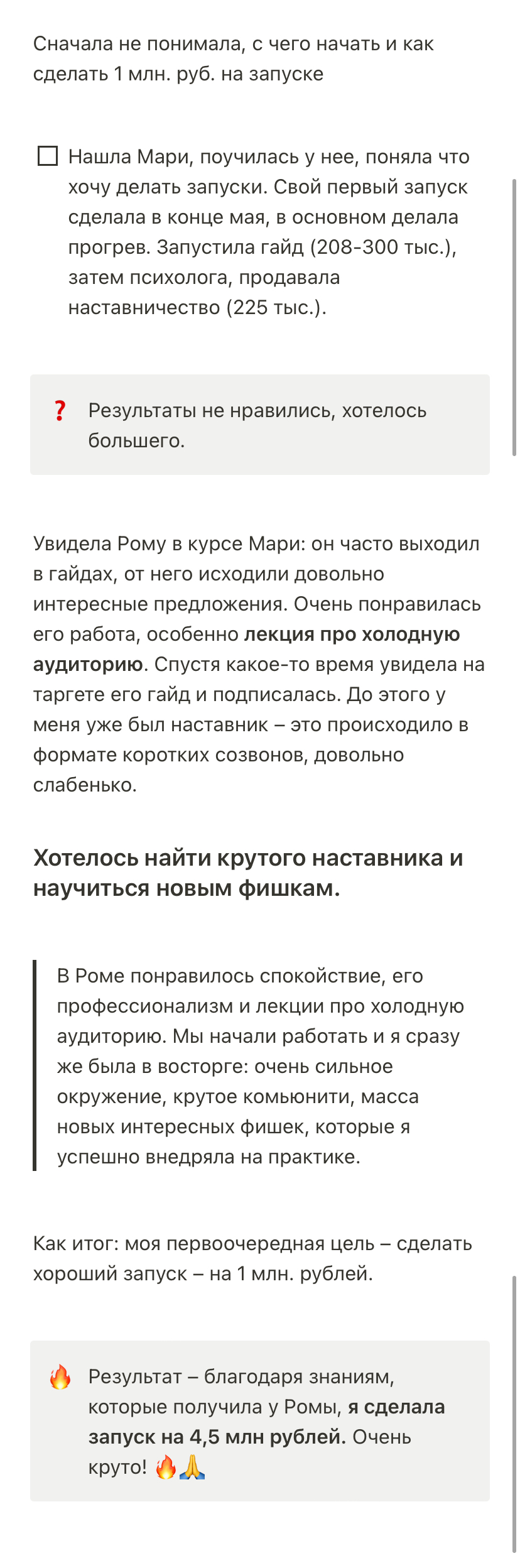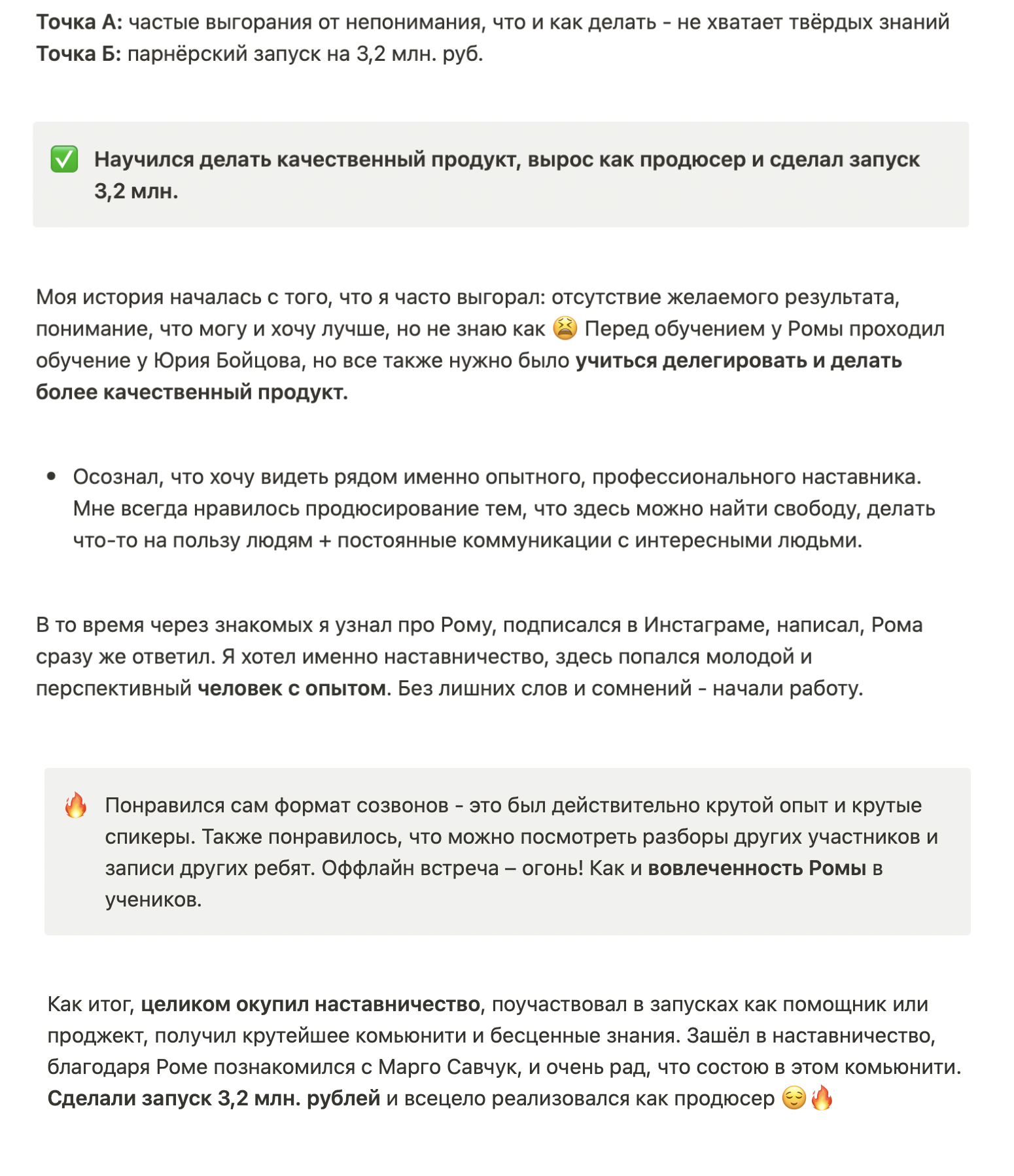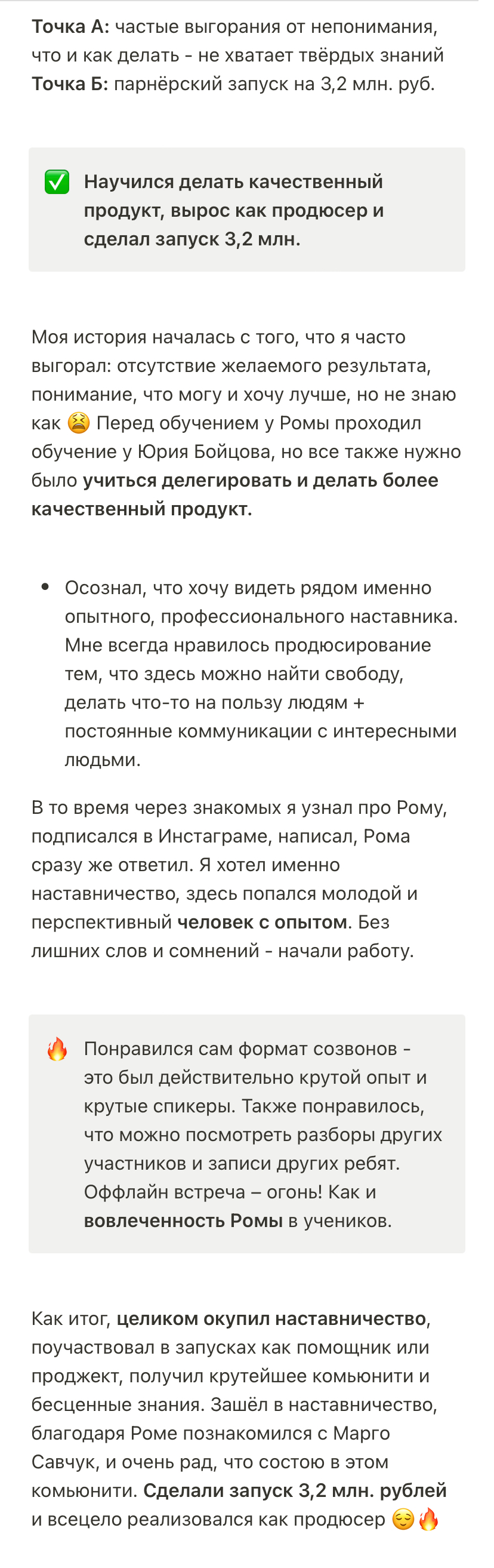 Результаты моих учеников с прошлых потоков наставничества говорят сами за себя: